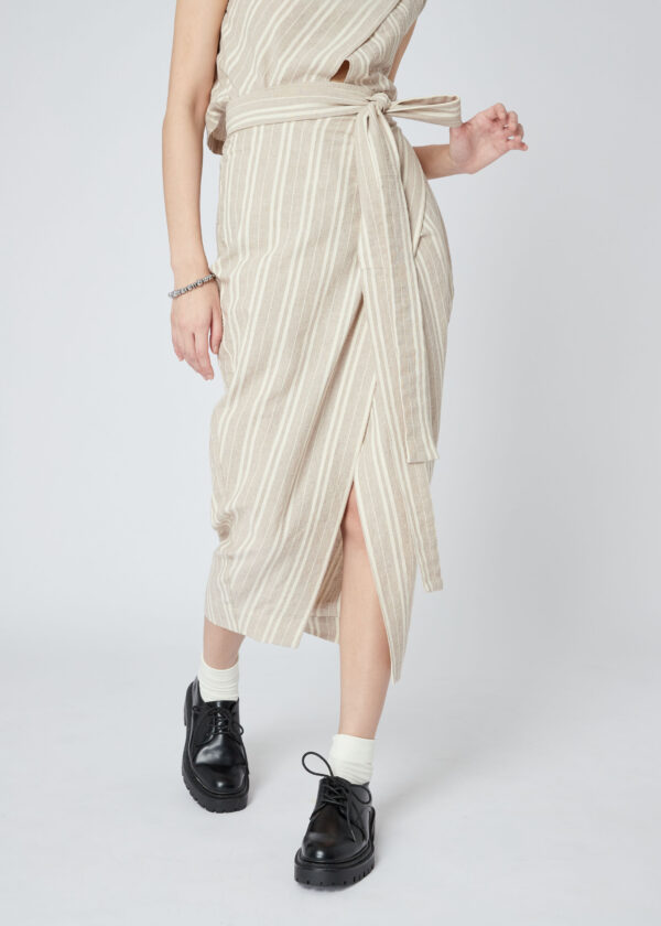 ขอแนะนำ Urban Ethnic Wrapping Skirt กระโปรงดีเทลป้ายข้างที่ได้แรงบันดาลใจมาจากเส้นเฉียง และ การพันทบการใส่กางเกงสะดอ หรือ กางเกงเลของกลุ่มชาติพันธ์ุทางตอนเหนือ ปรับให้มีความ Feminine และ โมเดิร์นขึ้น กับทรงกระโปรงป้ายที่มาพร้อมลายทางขาวดำ texture สวยแปลกตา ไม่ว่าเมื่อไหร่ก็ Mix & Match สนุก เรียบเก๋ ลงตัว ใส่ได้บ่อยจนเป็นชิ้นโปรดในใจ
